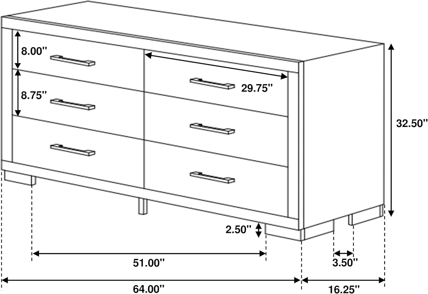 | Size | 16.3"D x 64"W x 32.5"H (6 Drawers) |