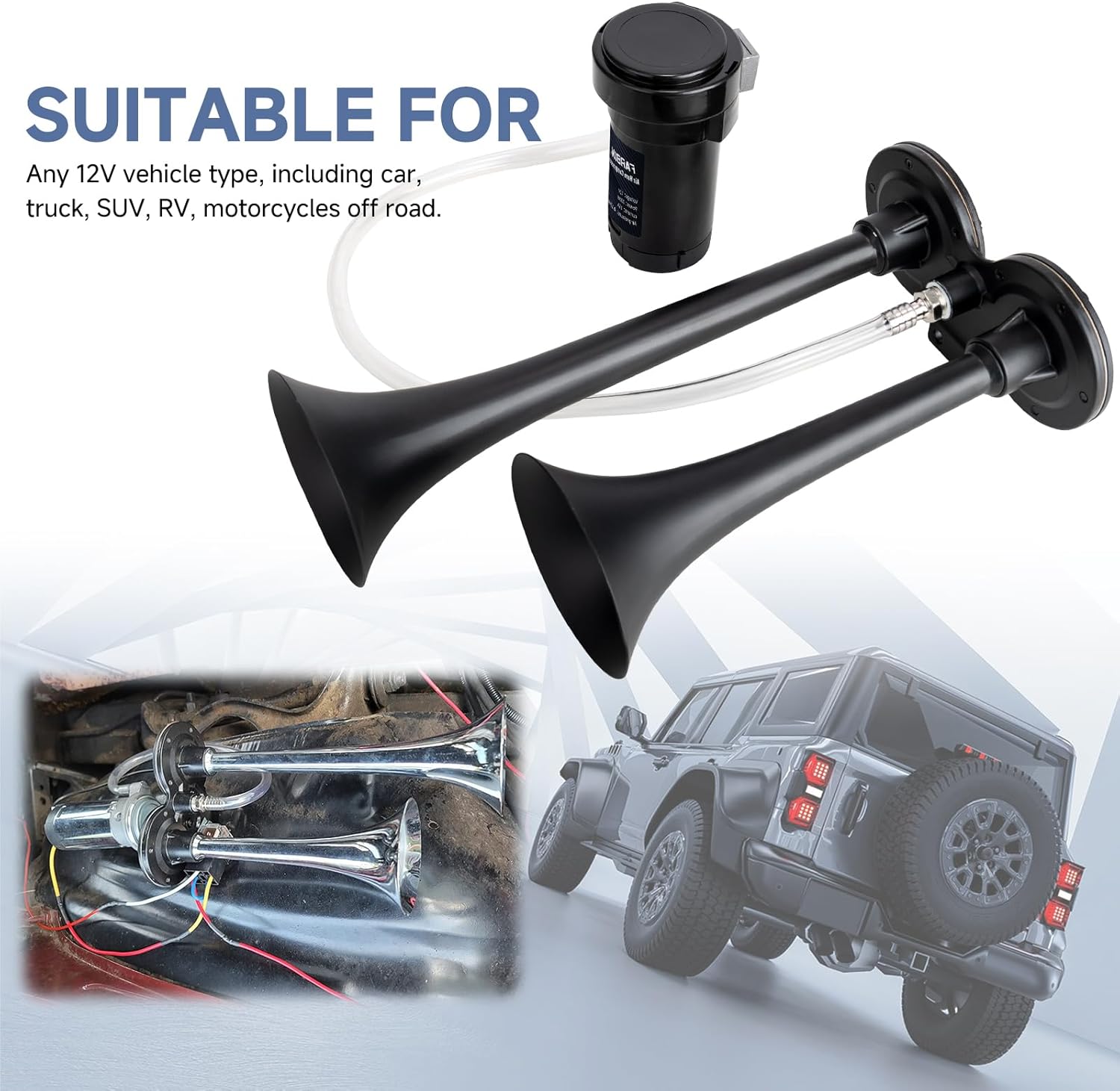 | Style Name | 12V Black double tube air horn + Button |