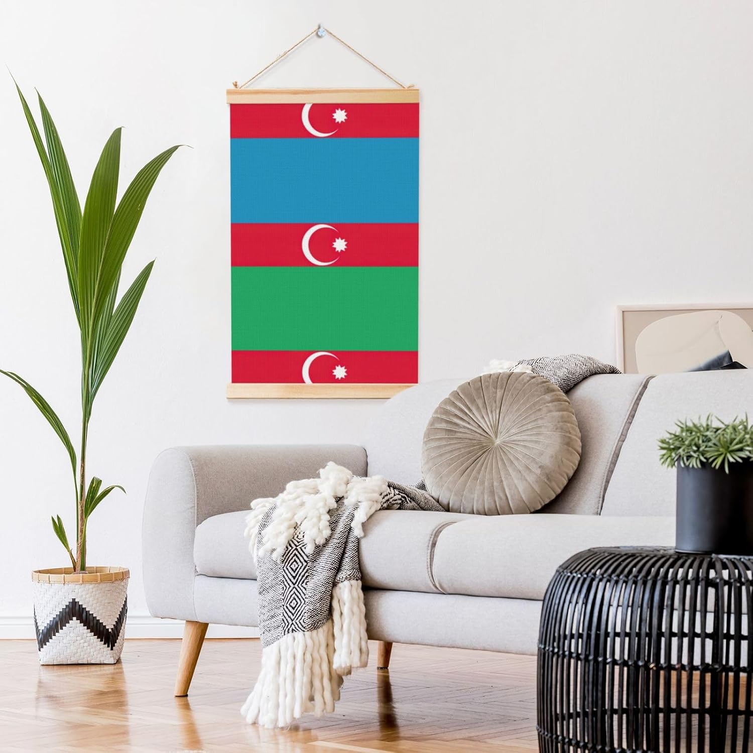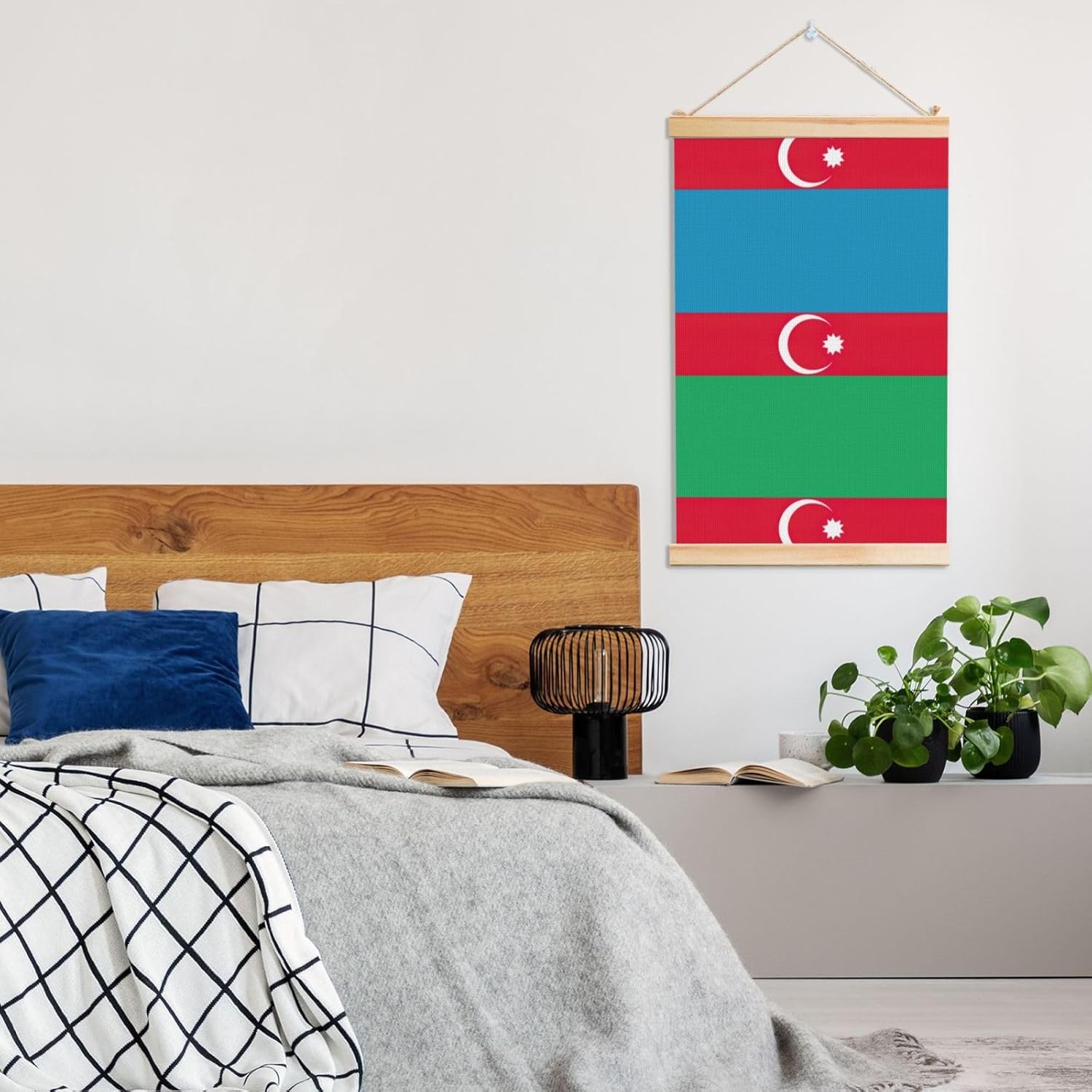 Our Flag Of Azerbaijan Print Wooden Poster Hanger Is An Excellent Addition To Your Home Decor Or A Perfect Gift For Friends And Family. Made Of Selected Quality Canvas With Brilliant And Enduring Colors, This Wall Art Is Designed To Resist Water, Dust, And Fading, Ensuring The Bright And Vibrant Art Lasts. The Polyester Is Enclosed Between Two Teak Wood Hanger Scrolls With An Attached 35cm Rope For Easy Hanging. Installation Is Made Simple With The Included Two Nails In A Plastic Box. The Modern Minimalist Style Of Our Wall Hanging Complements Any Home Decor, Elevating The Artistic Ambiance And Brightening Up The Room. Experience The Elegant Transformation This Wall Hanging Scroll Painting Brings To Your Spaces Today.
