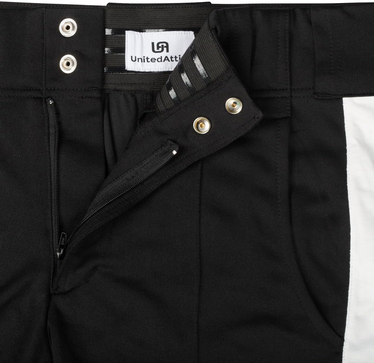 United Attire Football Referee Pants – Tapered Fit | Lightweight, Breathable, Professional Design Stay cool, comfortable, and professional on the field with United Attire Football Referee Pants, specifically engineered for warm weather officiating. Designed for peak performance and all-day comfort, these tapered-fit pants feature a modern, athletic silhouette and premium materials trusted by top sports officials. Crafted from a unique lightweight fabric blend, these referee pants offer exceptional breathability, flexibility, and durability—perfect for staying agile during fast-paced games. The classic black design with a white side stripe ensures a sharp, official look that meets professional standards.