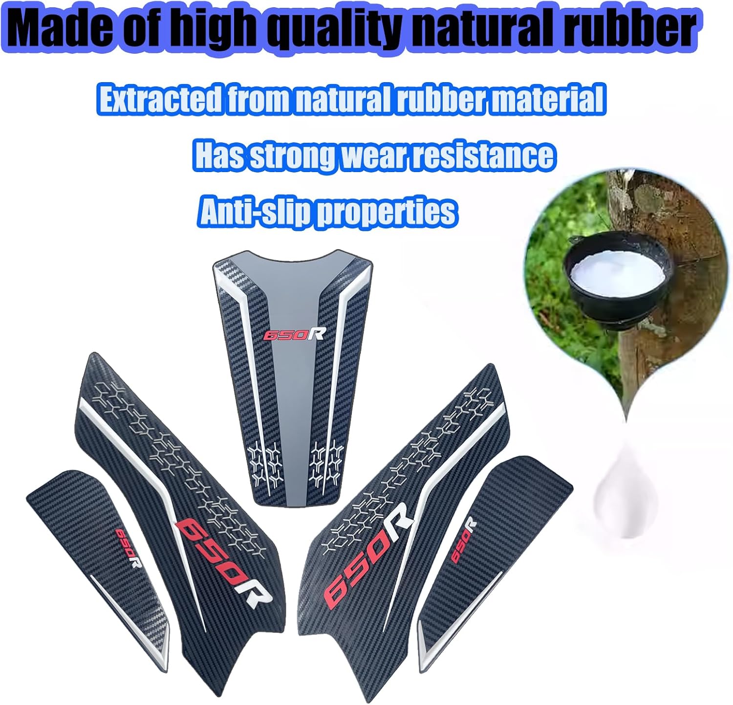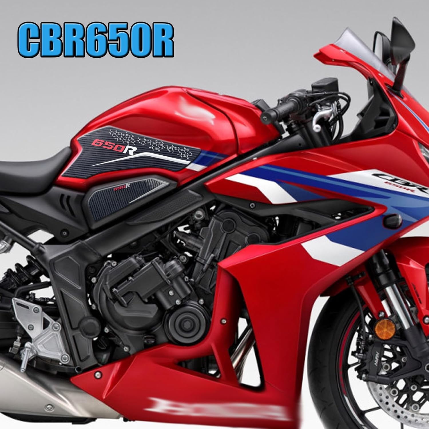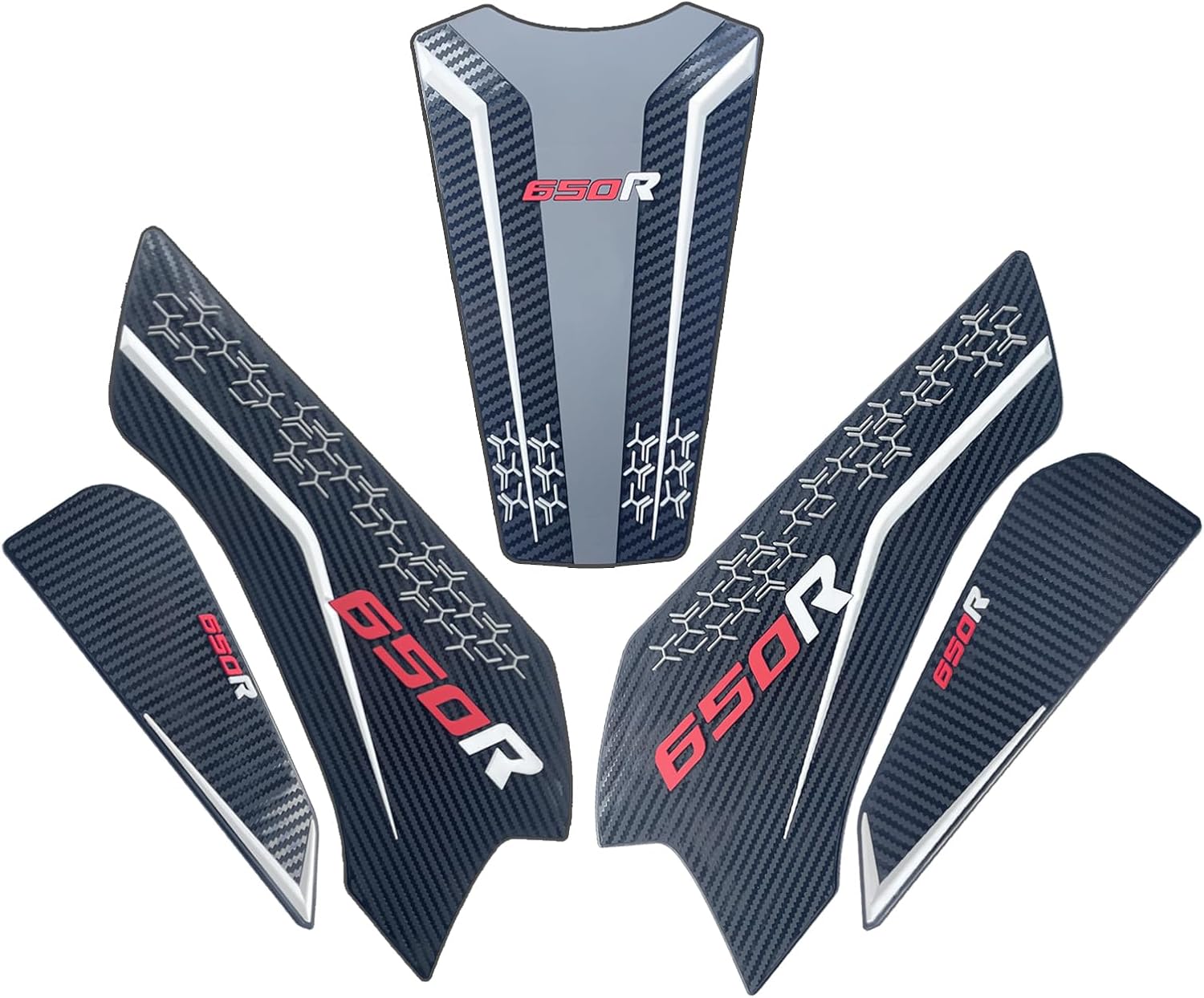 Features: **Thickened 3D rubber material ,Carbon fiber texture bottom;Super sticky backing prevents clear coating from being damaged Durable and waterproof Easy to apply and remove without damaging the tank paint. **Thickened high-density 3D embossed rubber improves strength, strong viscosity, no residual glue, good toughness, not easy to break, firm and excellent bonding quality. **Upper two sides of the tank pads to prevent the tank from scratching The side tank pads can prevent scratches or wear marks at the knees of the tank to the greatest extent。 **Beautiful Appearance: Professionally manufactured, fine workmanship, stylish design, perfect decoration for your motorcycle. **Protects the motorcycle while protecting the knees; the greater the friction, the safer it is and reduces damage to the knees **Add better motorcycle grip, sporty appearance, better driving experience and anti-scratch. **Exquisite appearance: Professionally manufactured, fine workmanship, stylish design, the stylish design ensures perfect fit and easy installation, while making your motorcycle look more stylish, making you eye-catching when riding a motorcycle, providing a perfect decoration for your motorcycle. **Fashionable thickened 3D embossed carbon fiber texture bottom design mat can decorate your motorcycle eye-catching. **Easy installation, no instructions required. -Applicable models: For CBR650R 2019-2020-2021-2022-2023-2024-2025 For CB650R 2019-2020-2021-2022-2023-2024-2025 Remarks: [Please make sure this part fits your motorcycle before ordering]