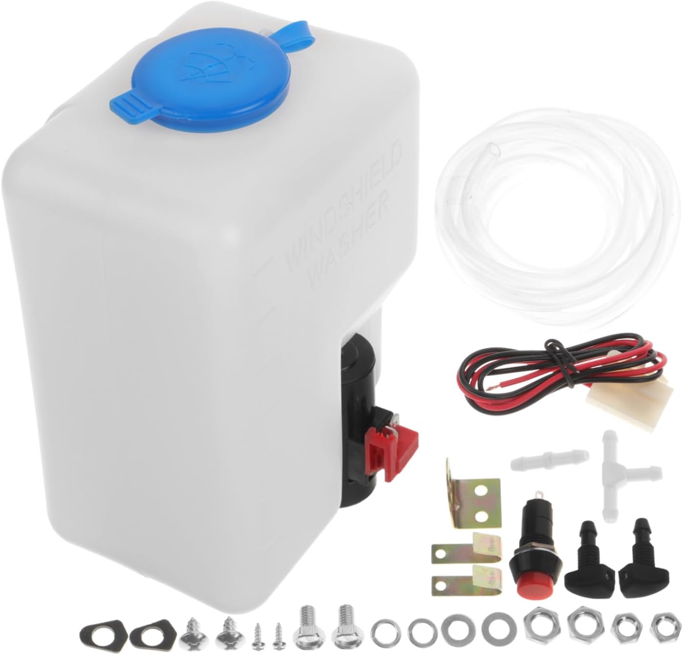 Package List 2 x Windshield Washer Pump Reservoir Bottle 2 x Hose 2 x Set of accessories Characteristics -The Capacity of Reservoir tank bottle: 1 windshield wiper hose. -Material:Plastic, metal windshield washer fluid tank -Color: reservoir -Saves time and effort: Offers a convenient and efficient solution for cleaning the windshield washer fluid reservoir. -Suitable: for 12V vehicle windshield washer hose kit -Size:18.00X12.00X10.00cm/7.07X4.72X3 washer reservoir hose. -This fluid reservoir kit provides a comprehensive solution for maintaining the cleanliness of windshields washer fluid reservoir tank. - Designed to be lightweight, allowing for easy transportation and use automotive replacement windshield washer hoses. -The windshield washer fluid reservoir kit is suitable for cleaning windshields windshield washer fluid container. - This washer fluid reservoir kit is simple to install, universally designed to fit most car etc windshield washer reservoir.Goods Descriptionwindshield washer fluid reservoir tank The windshield washer fluid tank kit quickly and cleans the stain.windshield washer fluid tank Its simple operation requires easy connecting and installation, saving time and effort.automotive replacement windshield washer hoses Made from plastic, metal materials, windshield washer reservoir kit is resistant to wear, ensuring long-lasting use