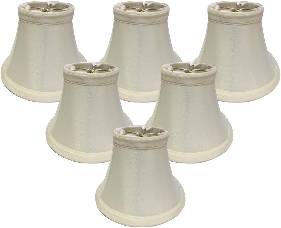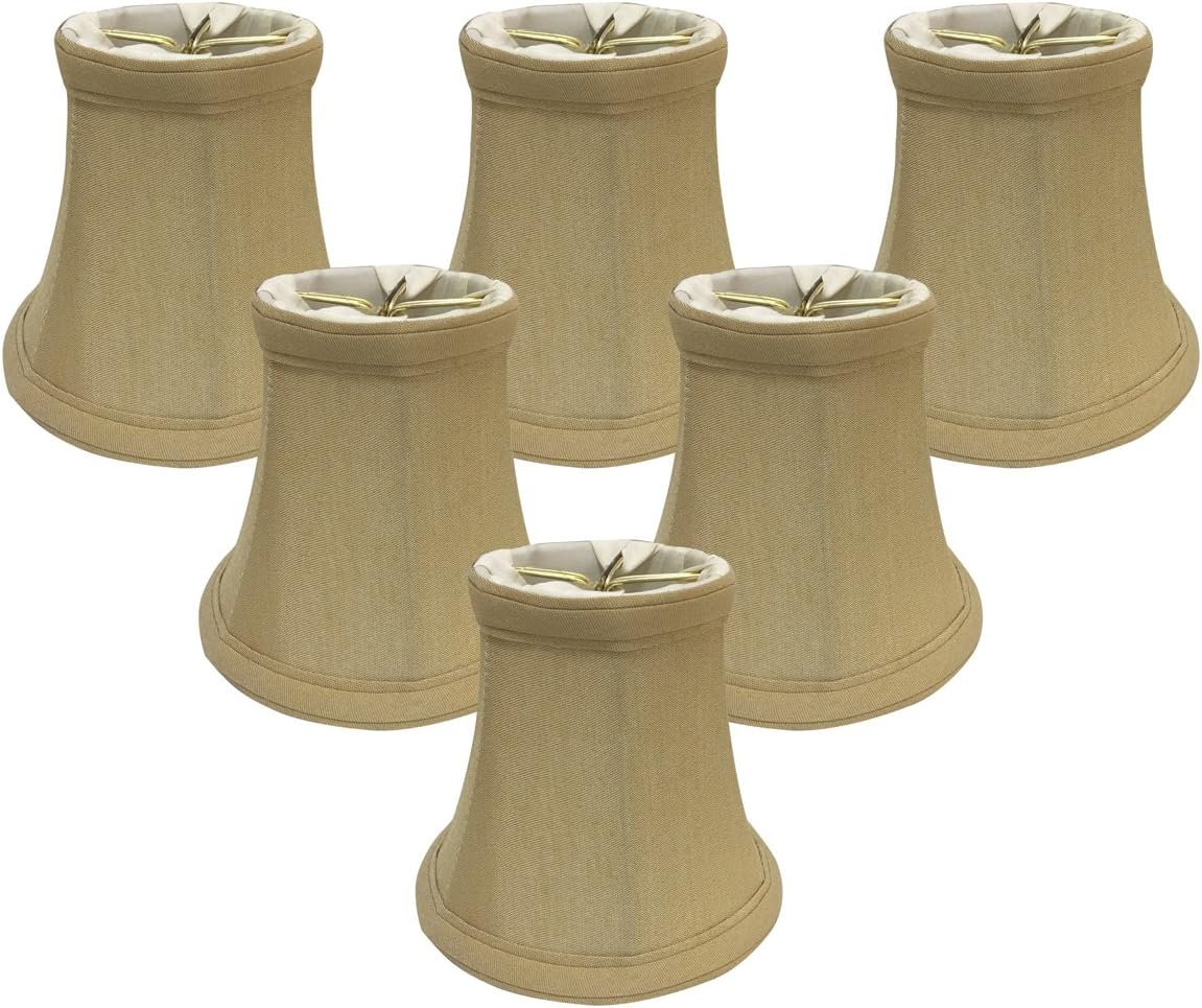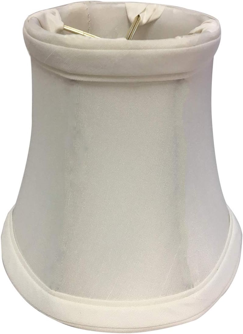 Add warmth and elegance to your chandelier or wall sconce with the Royal Designs, Inc. True Bell Chandelier Shade. Crafted from silk-type shantung fabric and finished with a premium polycotton lining, these high-quality shades are a simple yet stylish way to elevate your lighting without replacing your fixture. Each shade features a double flame clip that attaches directly to a candelabra-style bulb, offering quick installation and a secure fit. The classic bell shape softens light while adding a refined silhouette to your décor. Available in a range of colors—including bold hues like burgundy and black, and textures like burlap—these shades are lined with either off-white or gold to enhance the light and create ambiance. Perfect for chandeliers, wall sconces, candle-style lamps, or accent lighting, these clip-on shades are a smart and versatile choice for updating your space. Whether you're refreshing a vintage fixture or customizing a new look, these shades offer handcrafted quality and timeless style. Measurements are listed as (Top Diameter x Bottom Diameter x Slant Height). Height is measured by slant height from top to bottom of the lampshade’s front face. Please measure your existing shade—a replacement harp may be needed for a proper fit or additional adjustment if changing the height of the shade.