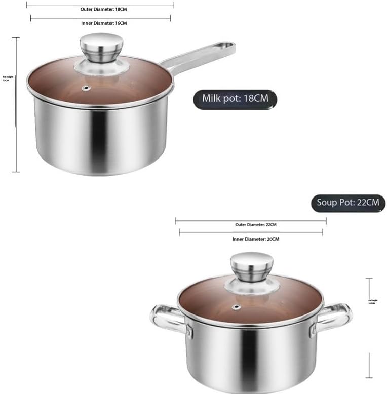 : Cookware SetMaterial: Stainless steelSize: As shown Color: As shownFunctions: Making soup/porridge/cooking porridge, etcWhether it is packaged: YesIncluding the lid: YesPacking List: Cookware set *1 set (excluding other exhibits)Note:Due to manual measurement, please allow an error of 2 to 3 centimeters.Due to the difference in lighting, the actual color may be slightly different from the pictureComplete kitchen set - Includes frying pans, stew pots, soup pots and corresponding lids, meeting all cooking needs. gift for moving house and festive occasions.