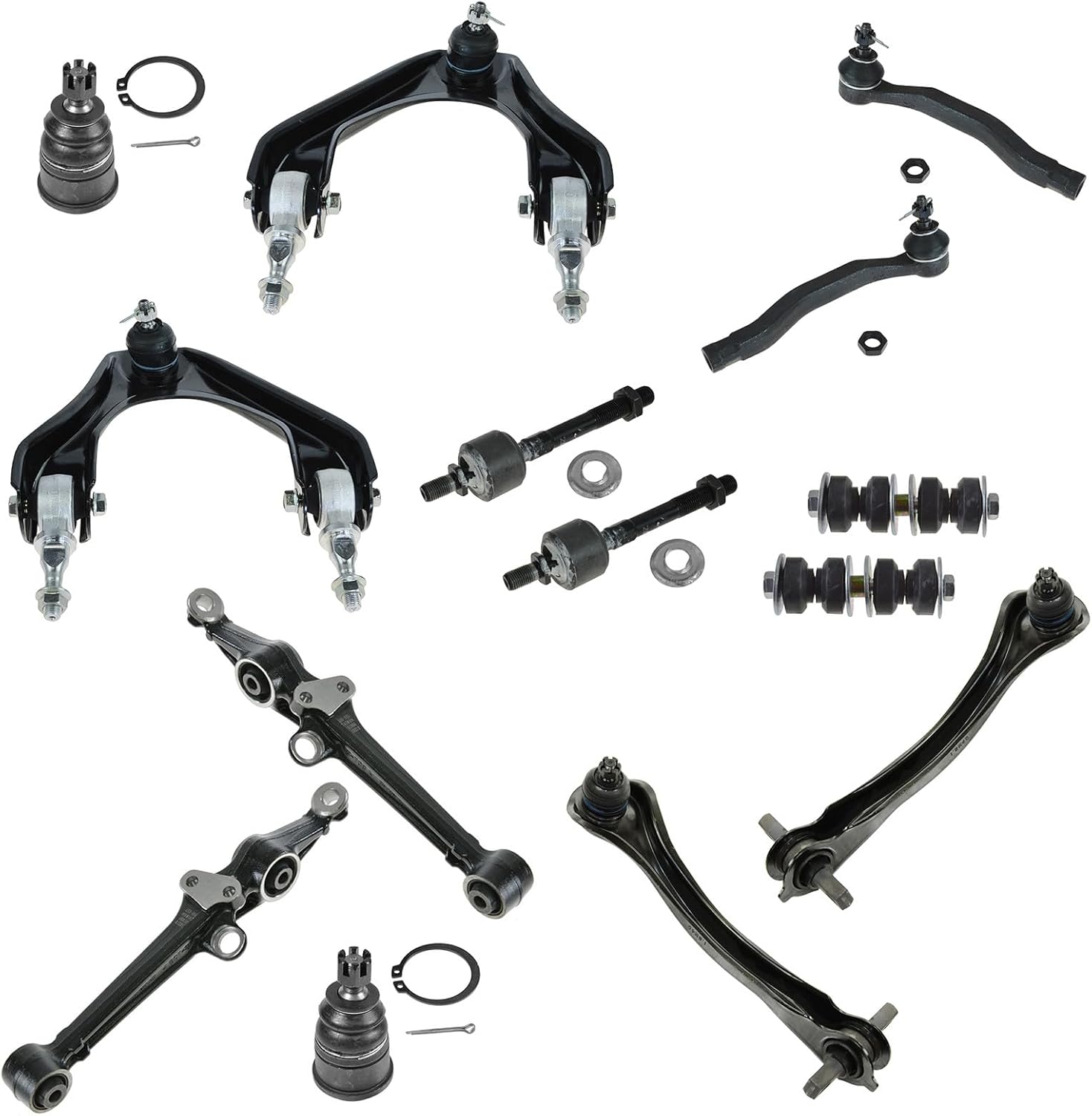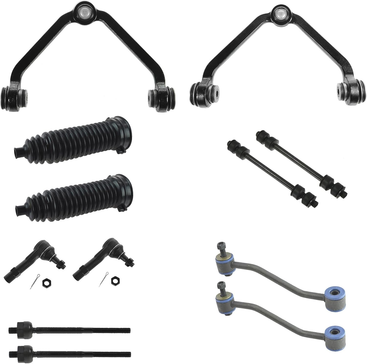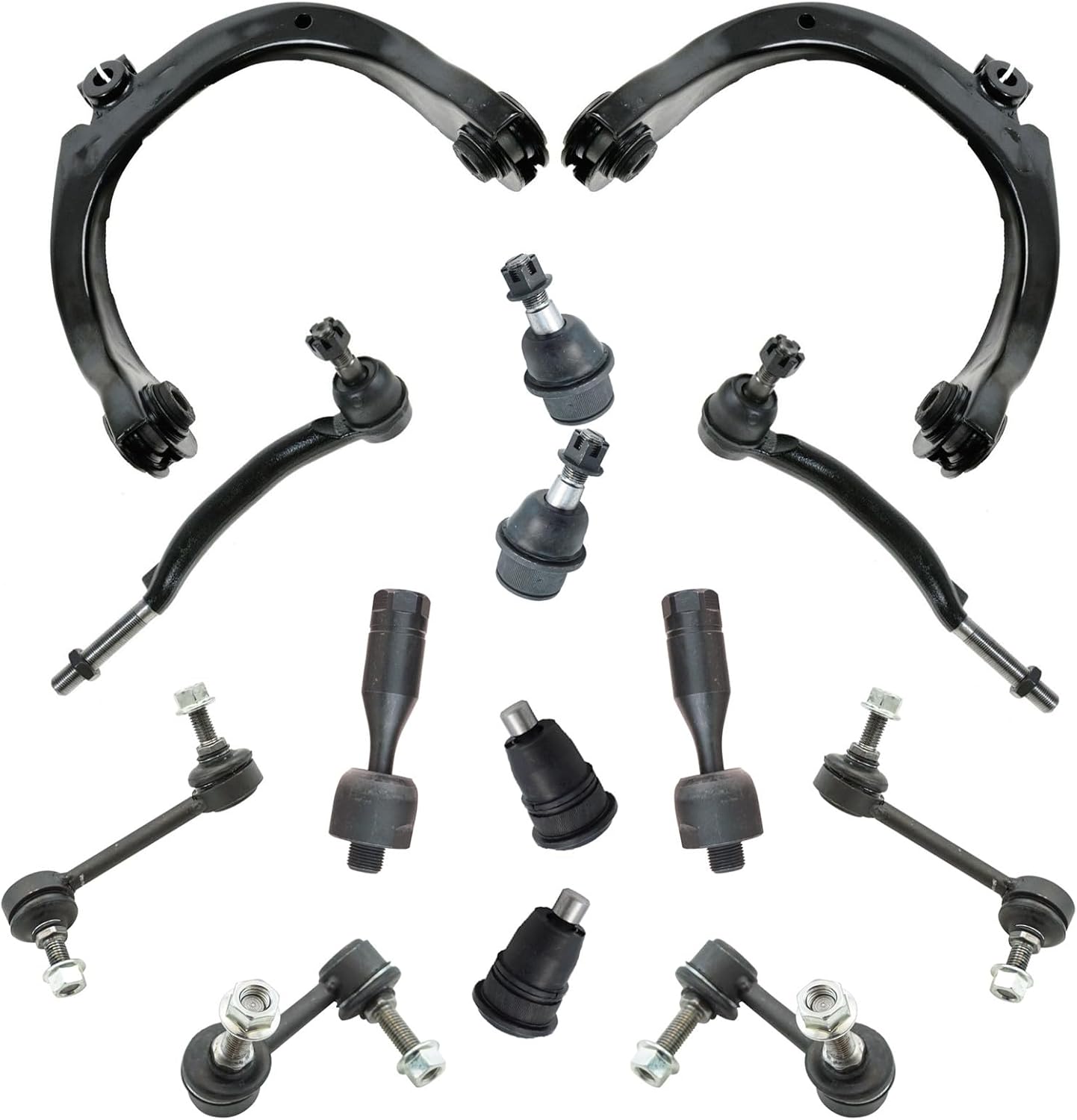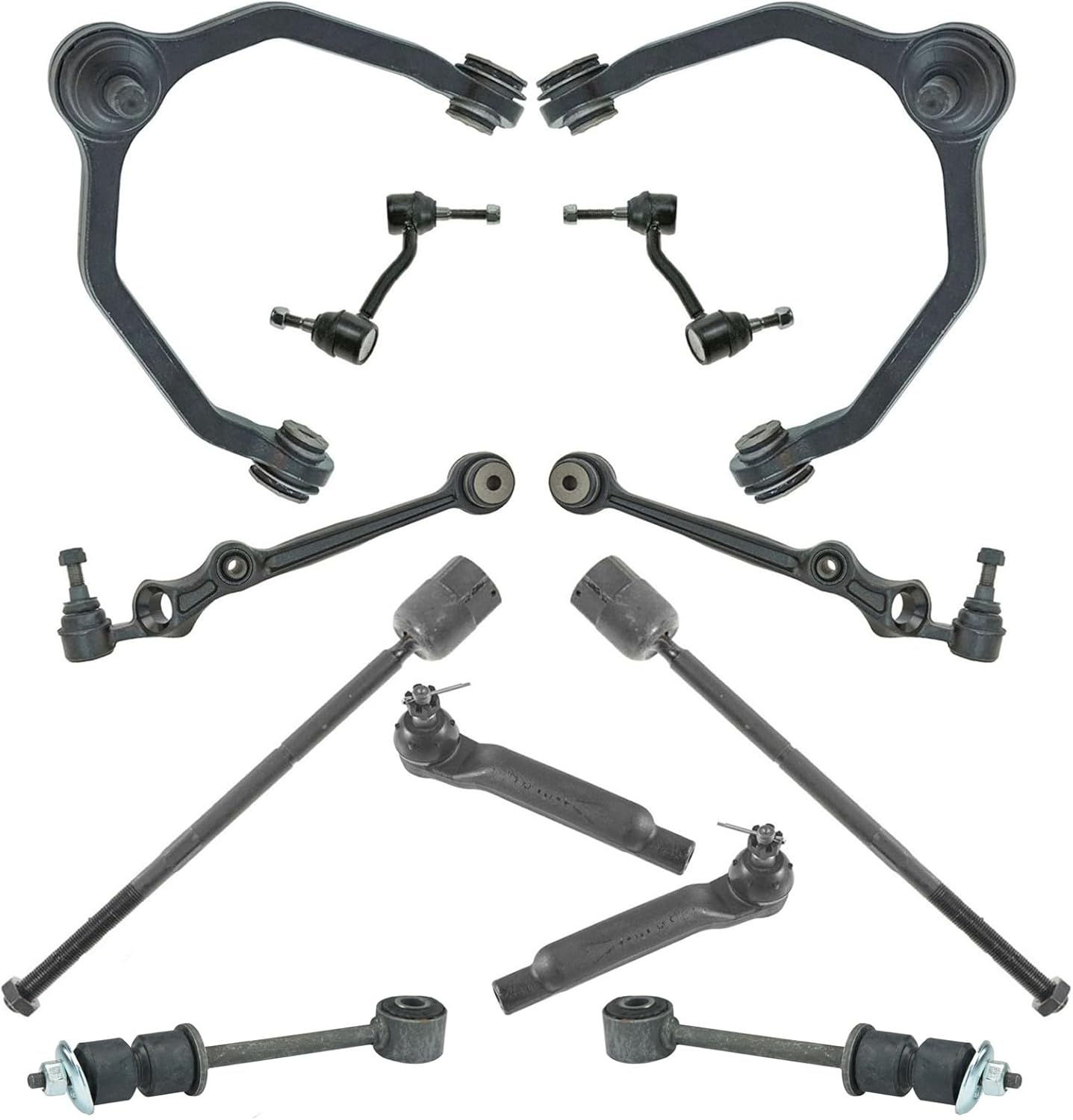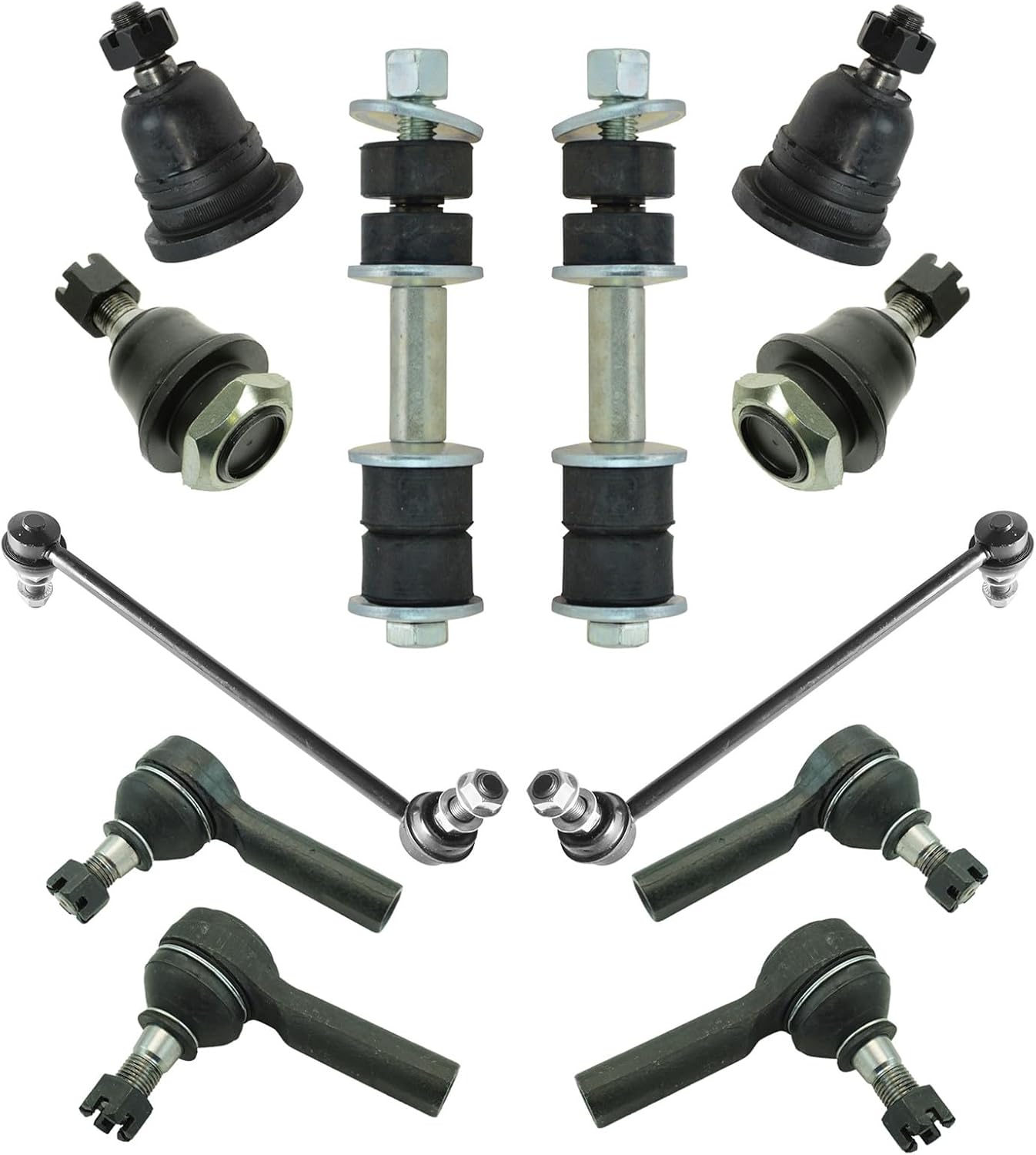 16 Piece Steering & Suspension KitKit Includes(1) Idler Arm & Bracket Assembly(1) Pitman Arm(2) Front Inner Tie Rods(2) Front Lower Ball Joints(2) Front Outer Tie Rods(2) Front Sway Bar Links(2) Front Tie Rod Adjusting Sleeves(2) Front Upper Ball Joints(2) Rear Sway Bar LinksFitmentFord Crown Victoria 1995-97 - Front & RearLincoln Town Car 1995-97 - Front & RearMercury Grand Marquis 1995-97 - Front & RearProduct AttributesQuantity: 16 PieceProduct Features Application Specific Design: No modifications necessary Anti-Corrosion Coated: Enhanced surface life Pre-greased: No additional maintenance required Kitted for Restored Performance: Improved road-feel and handlingItem DetailsTRQ suspension kits are manufactured using premium raw materials and coatings for extended service life. Each TRQ suspension component is designed to be a direct, maintenance-free replacement to the stock unit. To extend the life of your steering and suspension components, TRQ recommends replacing components in pairs, sets, or kits. All products are fit and road-tested in our Massachusetts R&D facility to ensure we deliver on our promise of Trusted Reliable Quality.Reference Numbers18229HD2W7Z3A130A2W7Z3A130AA2W7Z3A131A2W7Z3A131AA46G0028A531-378545-1028BD9AZ3A130AD9AZ3A131AES2057ES3311SES3494ES3495F3AZ3A130AF3AZ3A131AF5AZ3590AF5AZ3A130AF6AZ5K484AAF8AZ3590AAJTS683K8283K8678K8685K8688K8848K8853MCS104225MCS104226MES2057RLMES3311SMES3494MK8283MK8678MK8685MK8688MK8848MK8853SK8848SL-233HDSUS00092SUS00106SUS05315SUS06357SUS06667SUS06686SUS06687SUS07341SUS07389