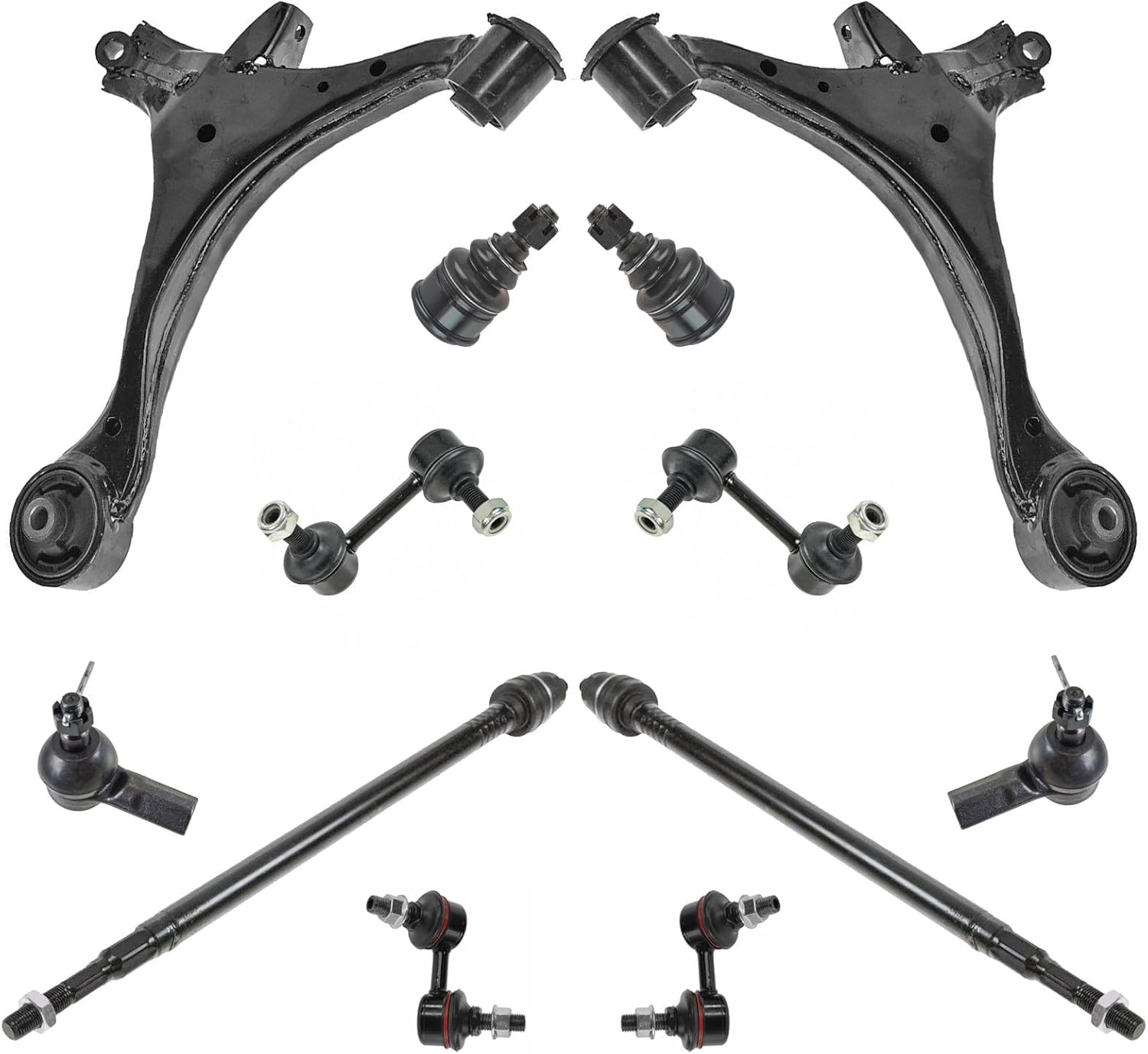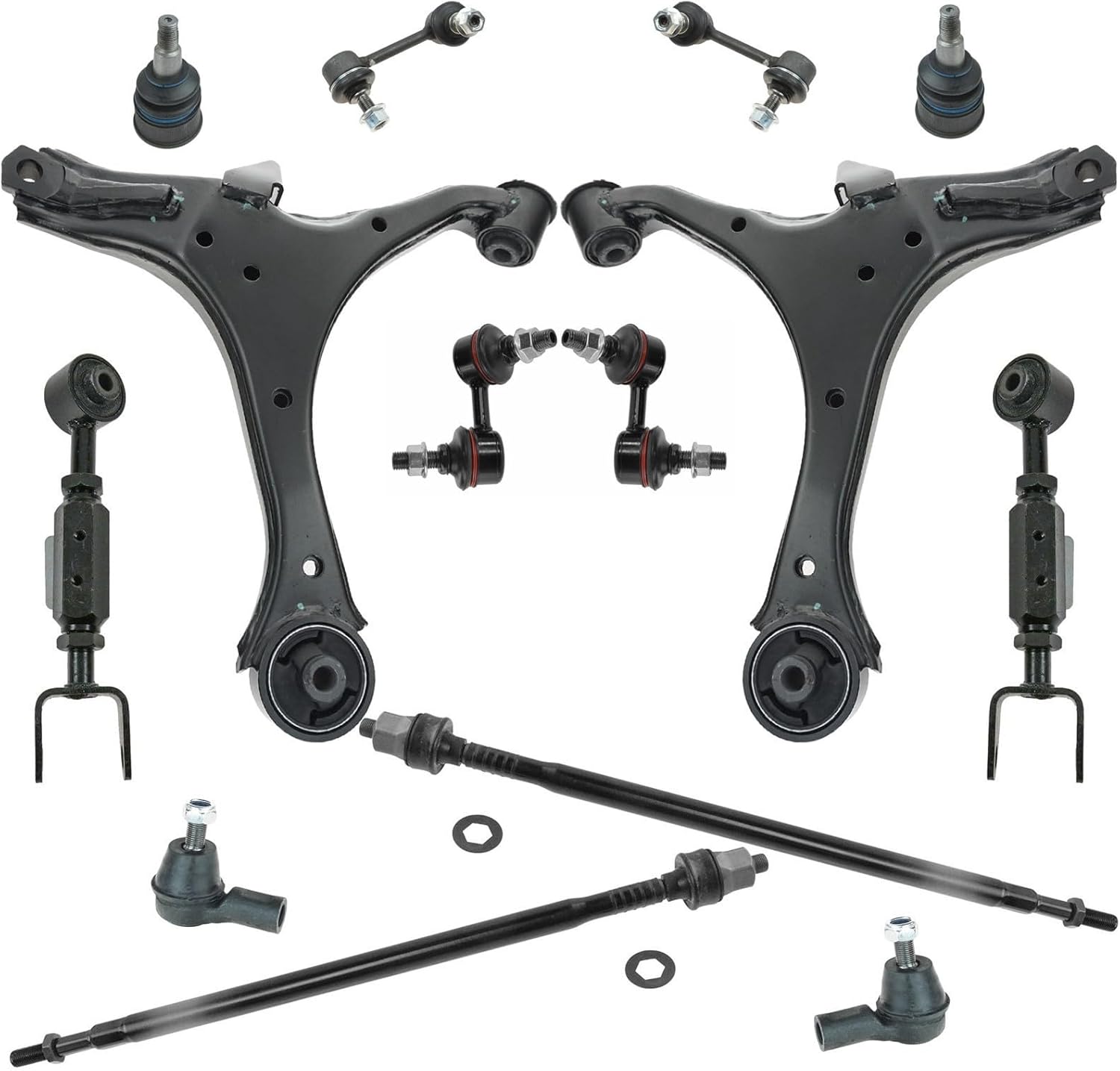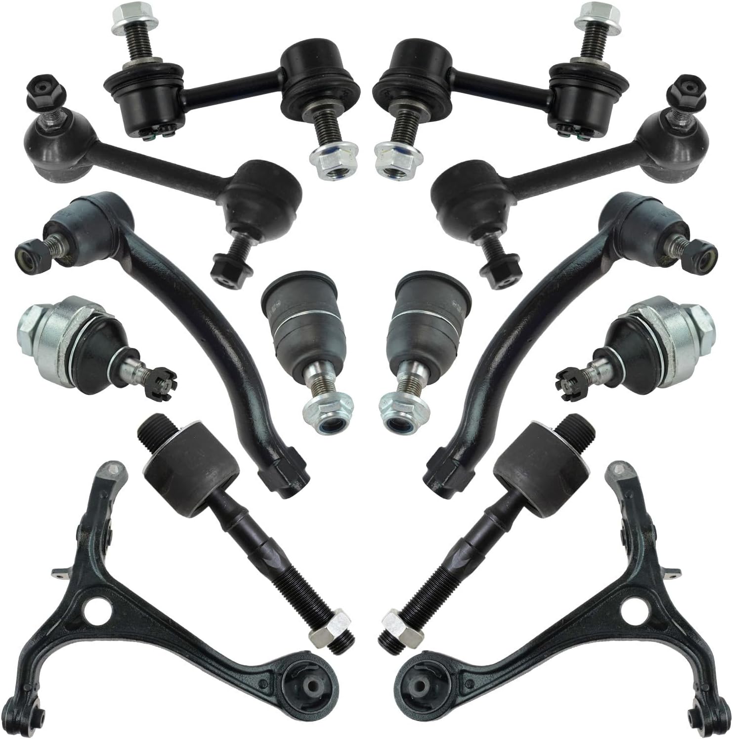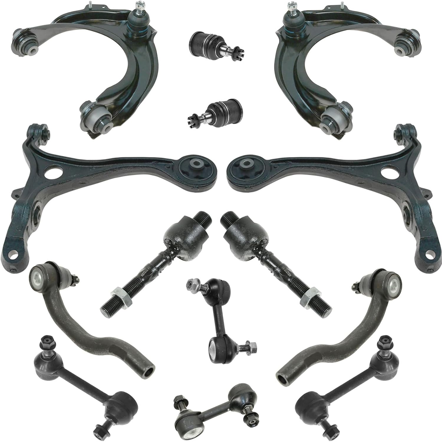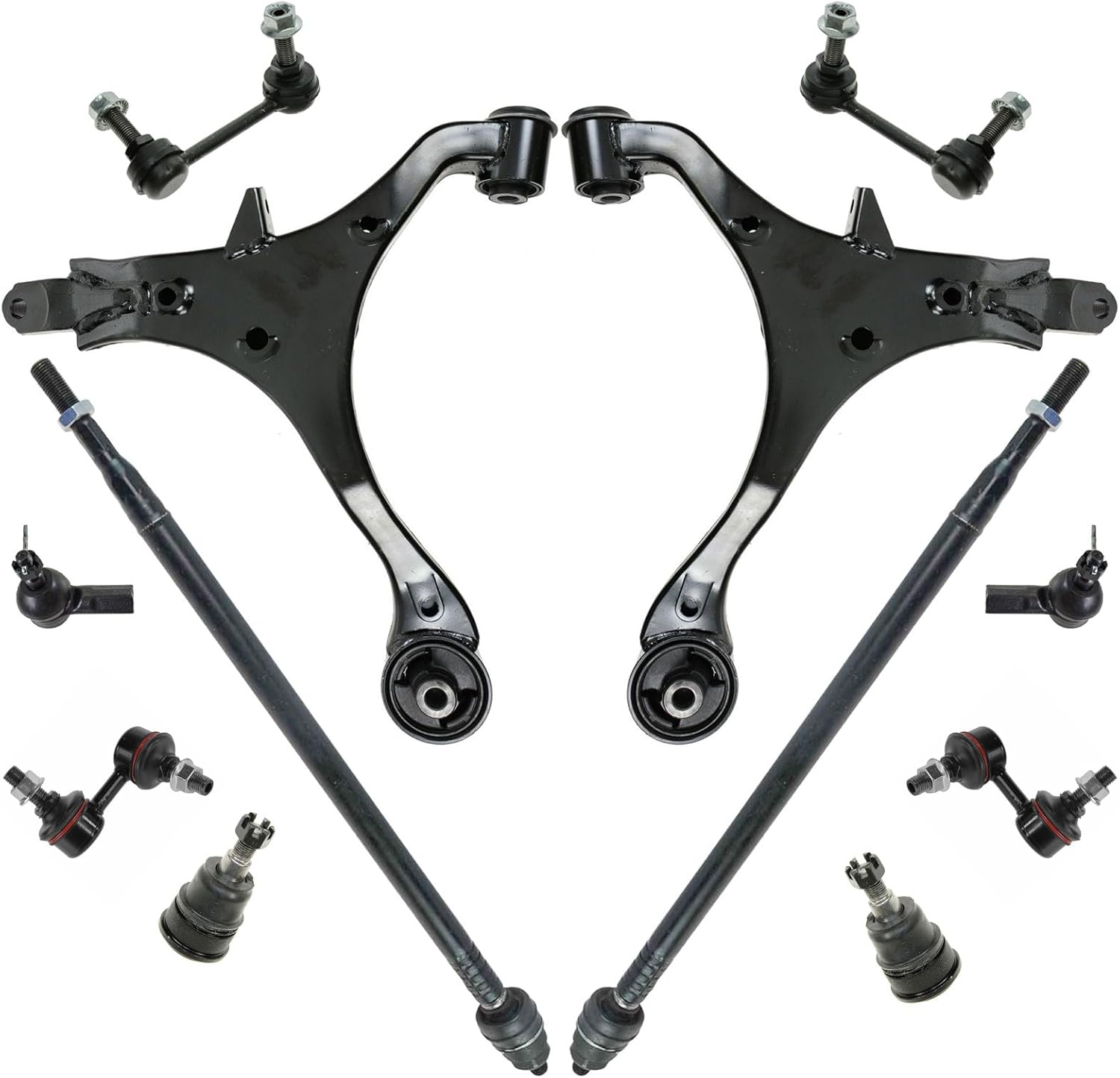 16 Piece Steering & Suspension KitKit Includes(1) Idler Arm & Bracket Assembly(1) Pitman Arm(2) Front Inner Tie Rods(2) Front Lower Ball Joints(2) Front Outer Tie Rods(2) Front Sway Bar Links(2) Front Tie Rod Adjusting Sleeves(2) Front Upper Ball Joints(2) Rear Sway Bar LinksFitmentFord Crown Victoria 1995-97 - Front & RearLincoln Town Car 1995-97 - Front & RearMercury Grand Marquis 1995-97 - Front & RearProduct AttributesQuantity: 16 PieceProduct Features Application Specific Design: No modifications necessary Anti-Corrosion Coated: Enhanced surface life Pre-greased: No additional maintenance required Kitted for Restored Performance: Improved road-feel and handlingItem DetailsTRQ suspension kits are manufactured using premium raw materials and coatings for extended service life. Each TRQ suspension component is designed to be a direct, maintenance-free replacement to the stock unit. To extend the life of your steering and suspension components, TRQ recommends replacing components in pairs, sets, or kits. All products are fit and road-tested in our Massachusetts R&D facility to ensure we deliver on our promise of Trusted Reliable Quality.Reference Numbers18229HD2W7Z3A130A2W7Z3A130AA2W7Z3A131A2W7Z3A131AA46G0028A531-378545-1028BD9AZ3A130AD9AZ3A131AES2057ES3311SES3494ES3495F3AZ3A130AF3AZ3A131AF5AZ3590AF5AZ3A130AF6AZ5K484AAF8AZ3590AAJTS683K8283K8678K8685K8688K8848K8853MCS104225MCS104226MES2057RLMES3311SMES3494MK8283MK8678MK8685MK8688MK8848MK8853SK8848SL-233HDSUS00092SUS00106SUS05315SUS06357SUS06667SUS06686SUS06687SUS07341SUS07389